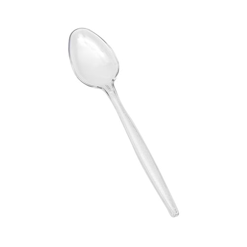 כפית חד פעמית, עשויה מפלסטיק בצבע שקוף איכותי וקשיח.