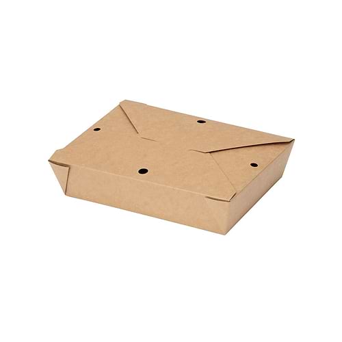 מיכל קרטון למזון חם Bio-2 בצבע חום מארז לאוכל מוכן מחורר מלמעלה כדי לשמור על טריות המזון וליציאת האדים