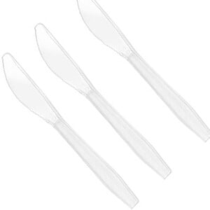 סכין חד פעמי עשוי מפלסטיק בצבע שקוף איכותי וקשיח.