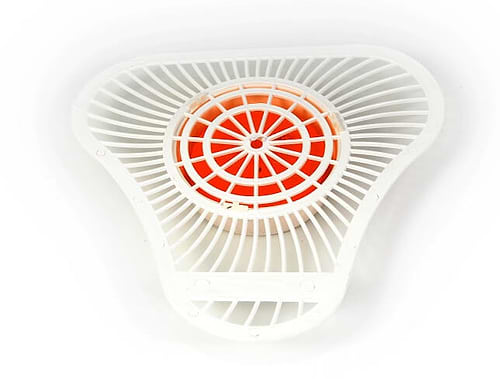 רשת פלסטיק להנחה ליד פתח הניקוז במשתנות ציבוריות.